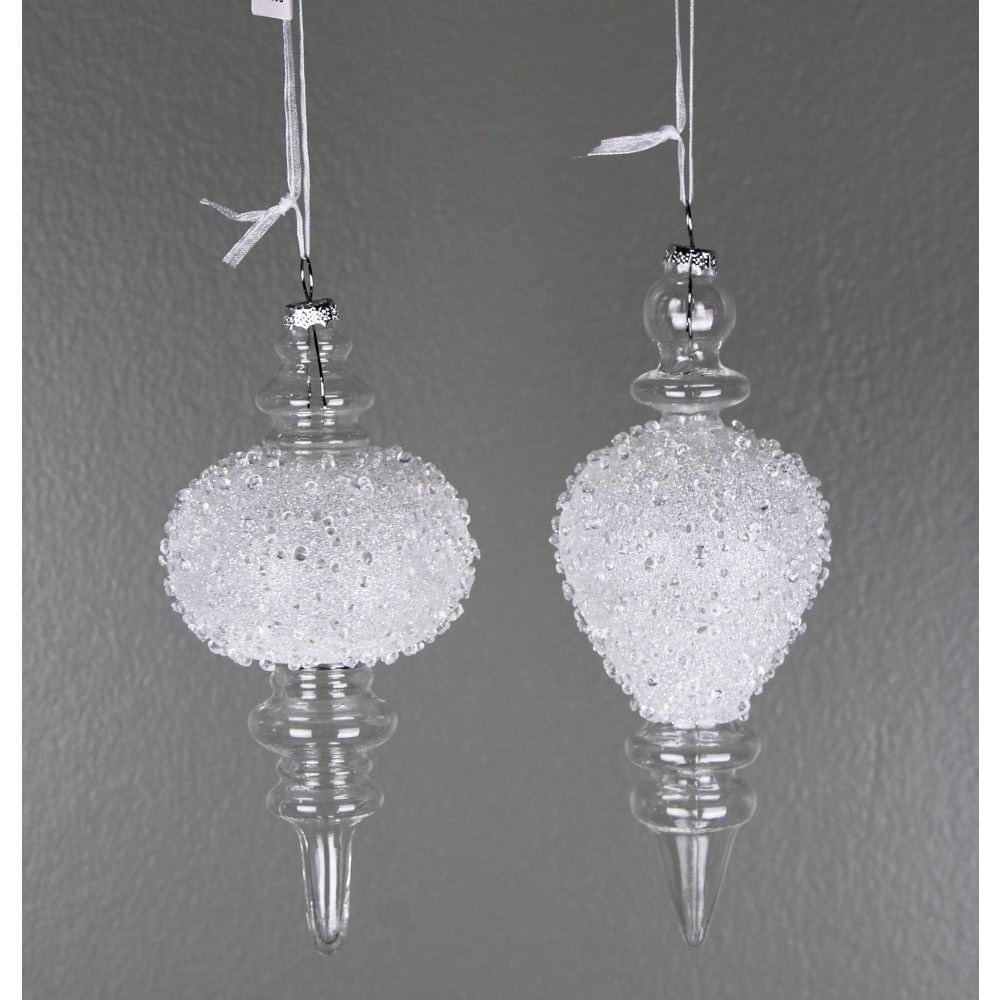 $16.79$20.99(-20%)) - 7.75" CLEAR/ WHITE FROSTED GLASS FINIAL ORNAMENT(