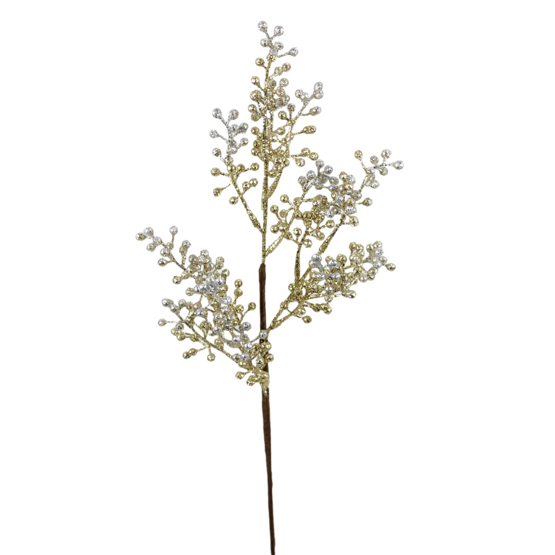 20" PLATINUM/ GOLD GLITTER BERRY SPRAY