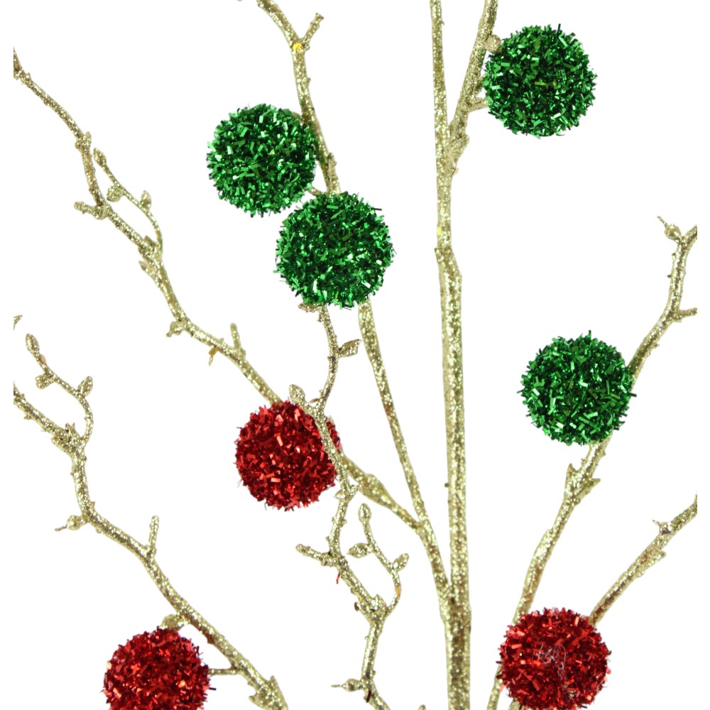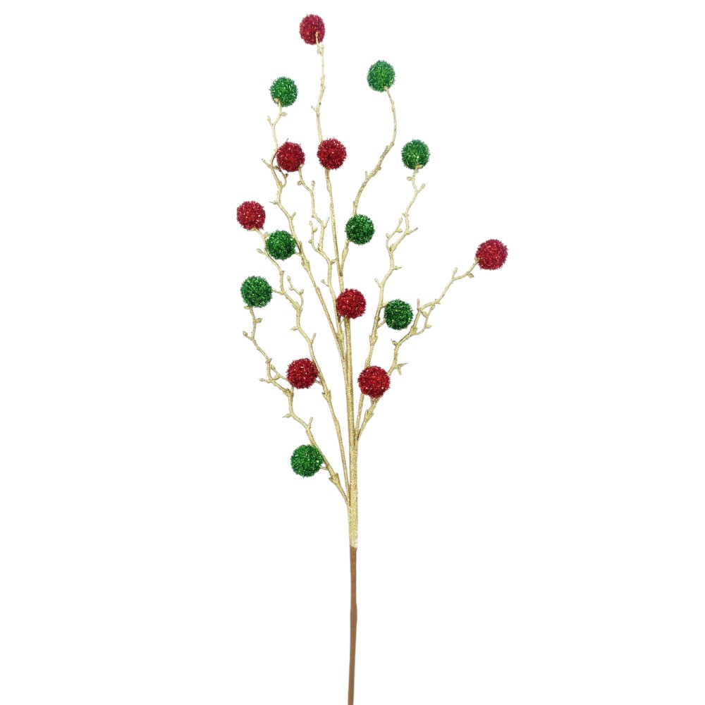 30″ RED/ HOLIDAY GREEN/ GOLD TWIG BALL SPRAY