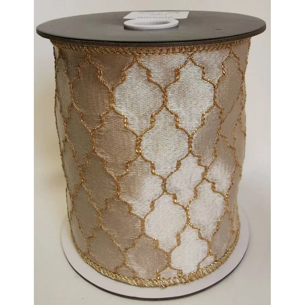 4"x5Y IVORY / GOLD LINK RIBBON