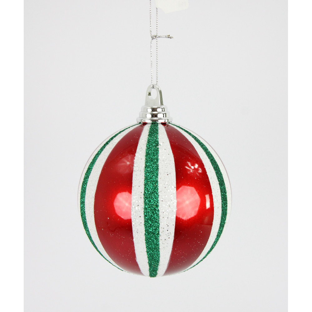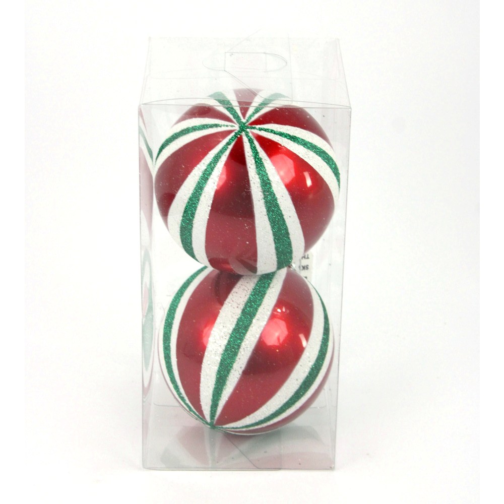 5.5″ RED/HOLIDAY GREEN/WHITE STRIPED BALL ORNAMENT-BOX OF 2